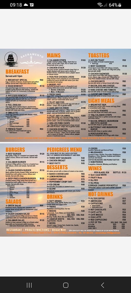 Welcome to Sacramento Restaurant, a hidden gem nestled along the stunning coast at 32 Marine Dr, Schoenmakerskop in Gqeberha, South Africa. Known for its vibrant atmosphere and breathtaking ocean views, this venue is steeped in history, making it the perfect backdrop for a memorable dining experience.